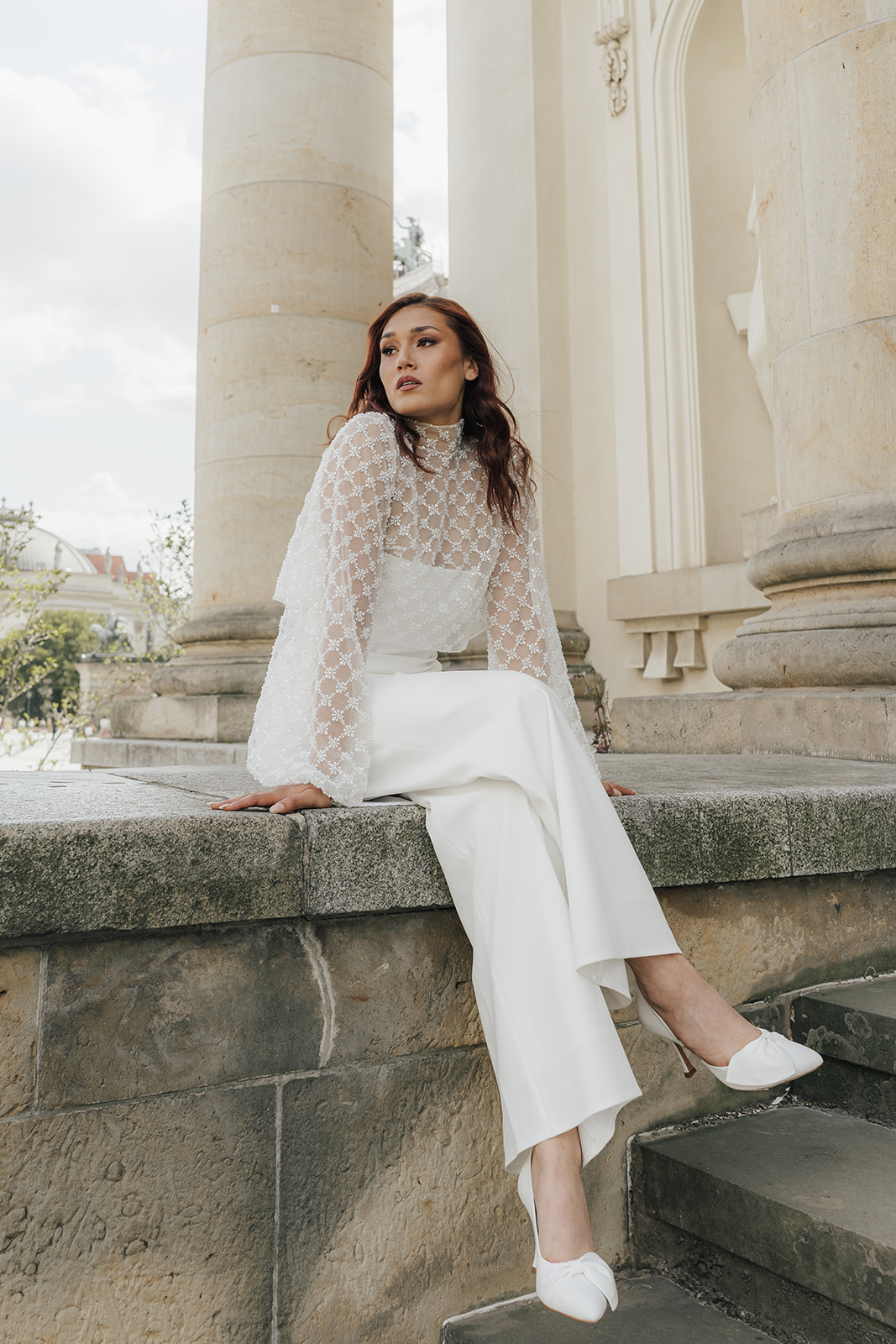 These elegant pumps are the epitome of feminine sophistication – a must-have for any bride who loves classic design with a touch of extravagance. The refined color makes these shoes a versatile essential – perfect for weddings or stylish evening occasions. The large, elegantly folded bow on the front is a true eye-catcher, adding a graceful touch. The sleek, pointy toe creates a visually lengthening effect and gives the shoe an especially elegant line. The slim heel offers feminine chic without sacrificing stability – ideal for wearing all day (and night). The cut-out on the lateral side adds a sophisticated flair and beautifully frames the foot. Made of soft leather, these pumps fit true to size.